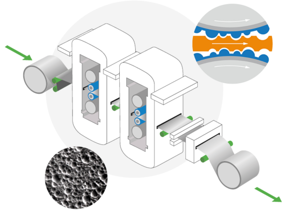 - Constant Product Quality with TOPOCROM Rolls from the beginning (no running in-time) High pressure cleaning of working rolls during operation is necessary